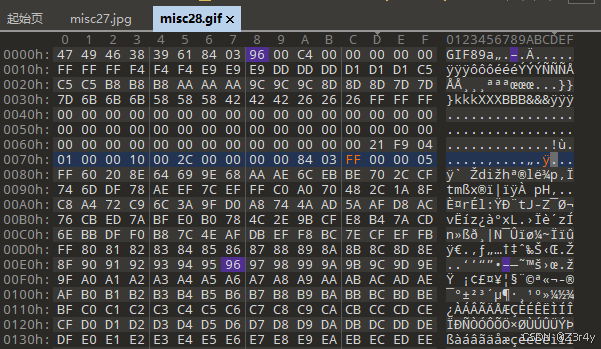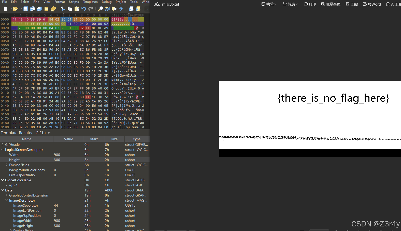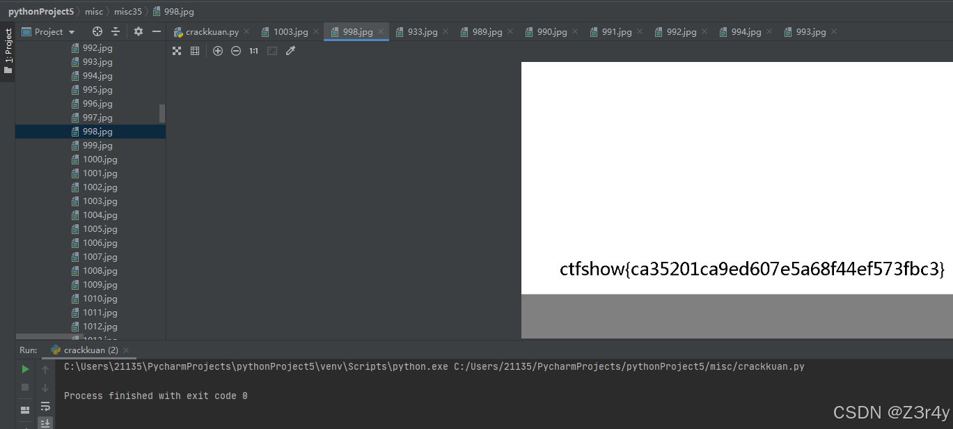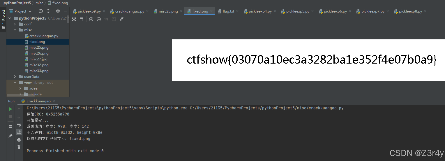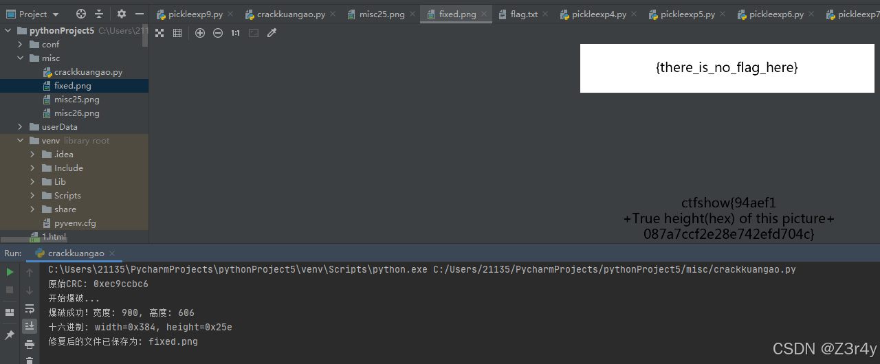 for i in range(900,1200):#根据题目给的图片格式修改后缀image_name='misc34/'+str(i)+'.png'image=open(image_name,"wb")#pngdata=bp[:16] + struct.pack('>i', i)+bp[20:24]+bp[24:]#png#jpg#data=bp[:157]+bp[157:159] + struct.pack('>h', i)+bp[161:] #jpg#gif# data=bp[:38]+ struct.pack('>h', i)[::-1]+bp[40:42] +bp[42:]#gifimage.write(data)image.close()