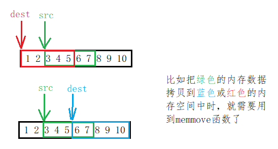 1.12.2 如果源空间和目标空间发生了重叠,就得使用memmove来处理。