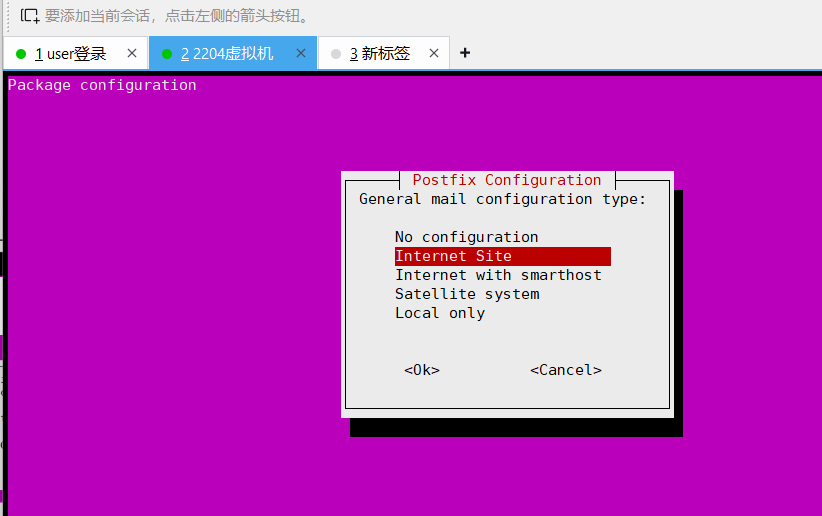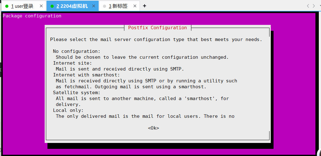 buntu 会弹出一个 蓝色的配置界面(其实是 debconf