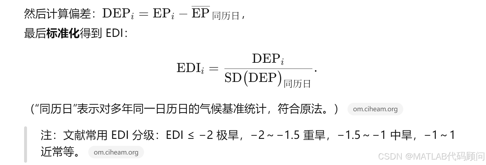 MATLAB计算有效干旱指数(Effective drought index, EDI)