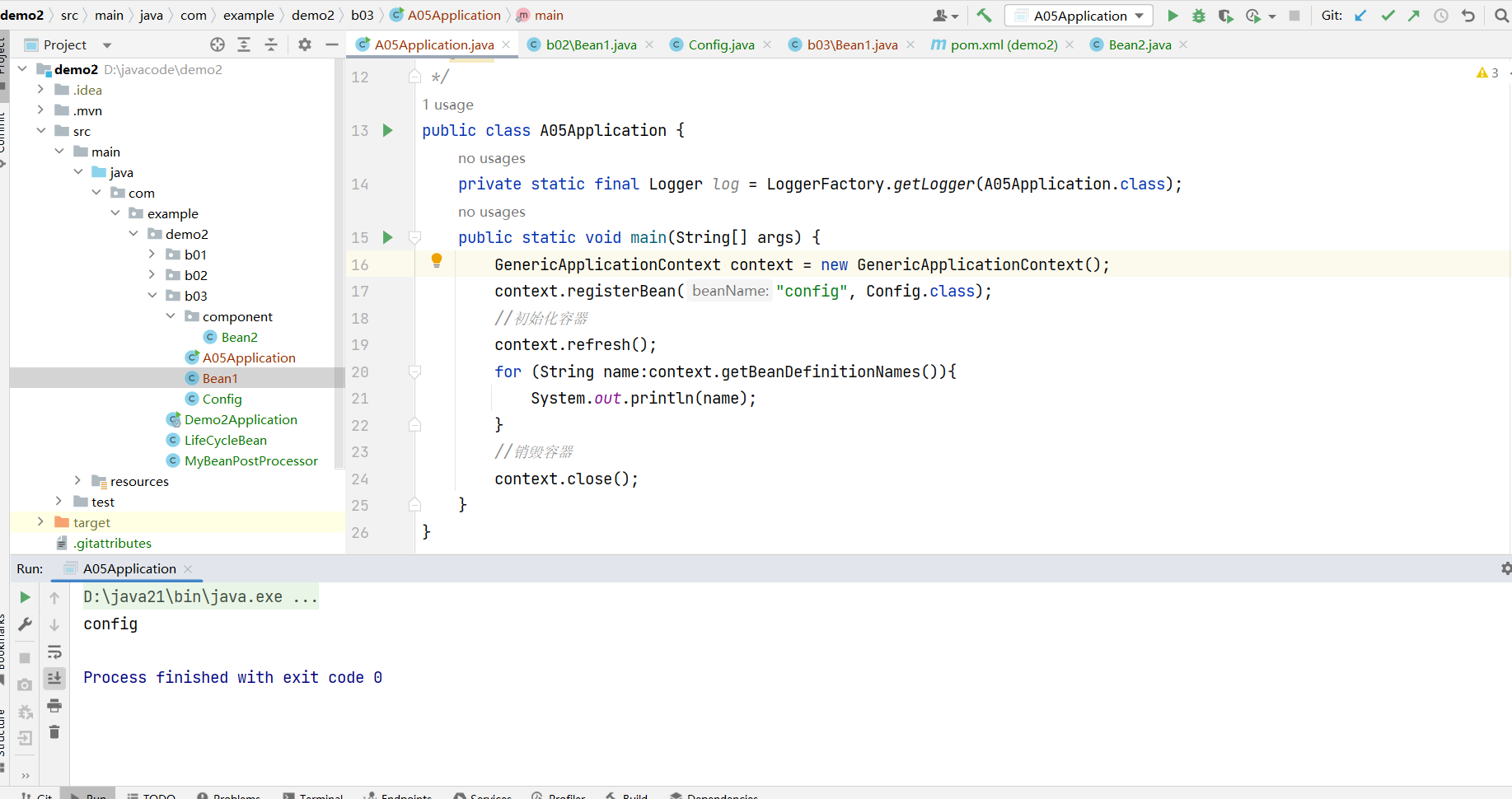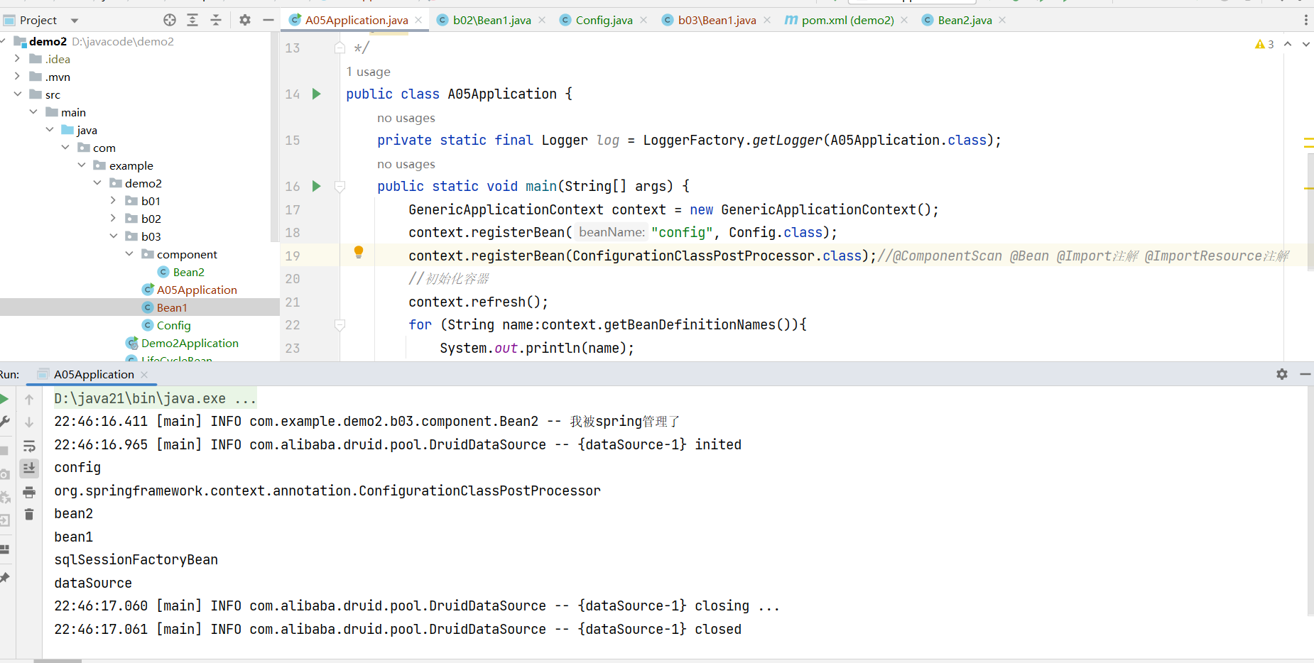 Bean2在com.example.demo2.b03.component包下,通过扫描注入到Spring容器。