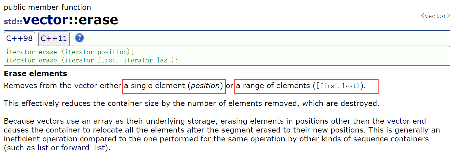 - 与其它动态序列容器相比(deque、list and forward_list), vector在访问元素的时候更加高效,在末尾添加和删除元素相对高效。对于其它不在末尾的删除和插入操作,效率更低。比起list和forward_list统一的迭代器和引用更好。