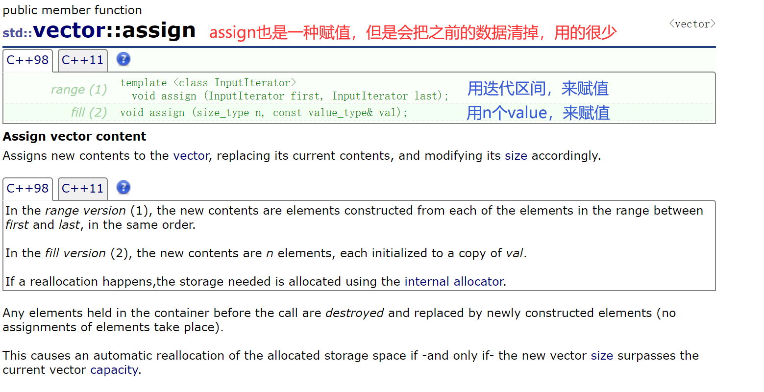 vector的assign也会比string的assign简洁很多,string类整体都设计得比较冗余,没什么经验。