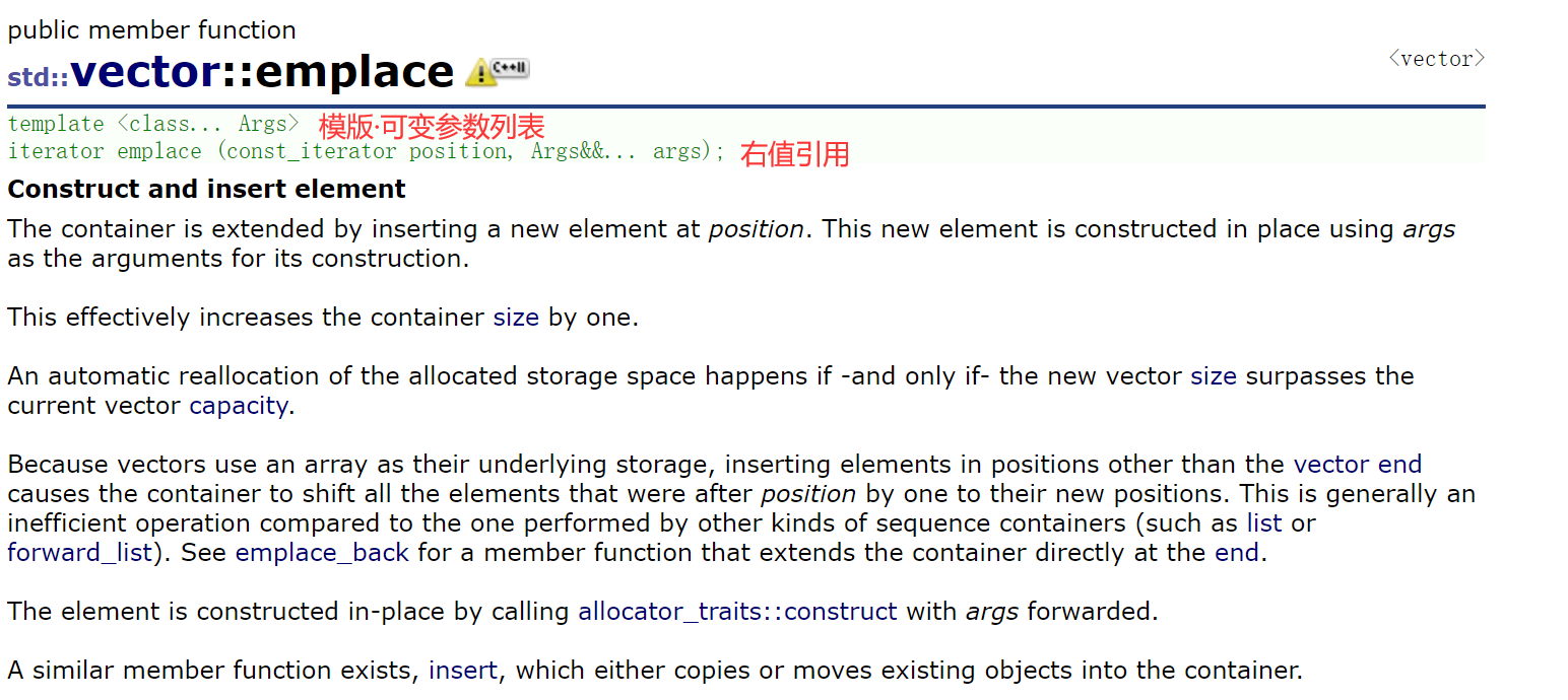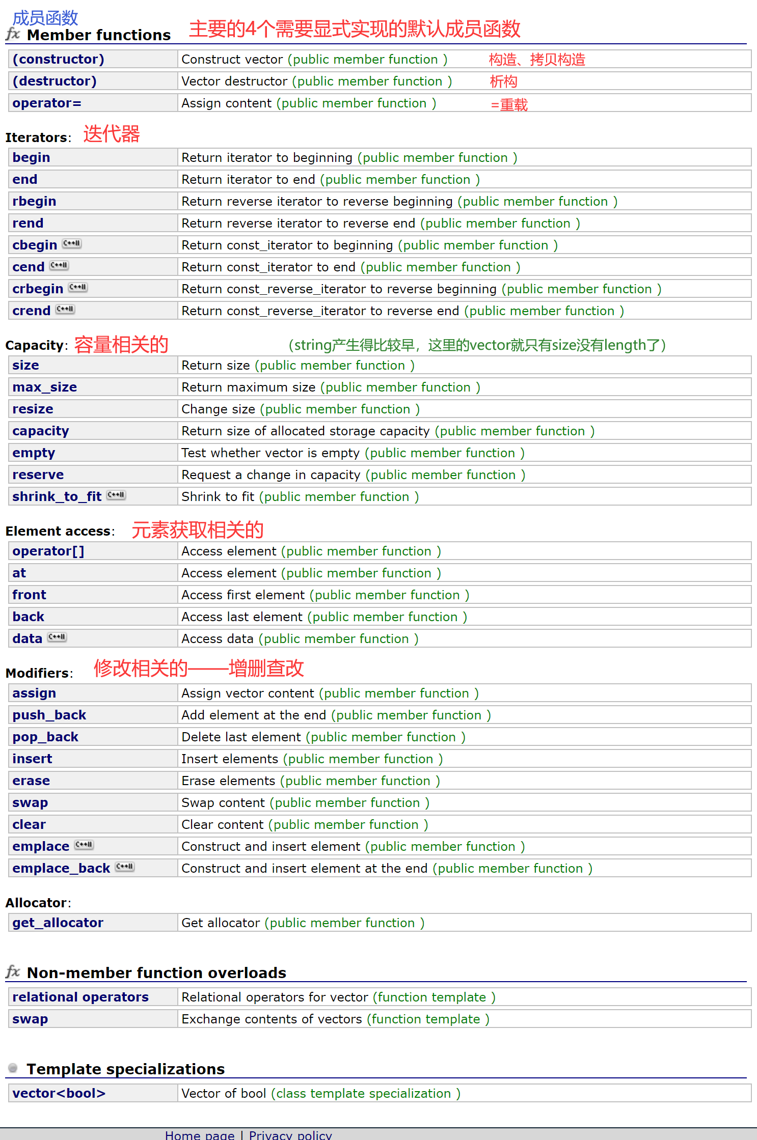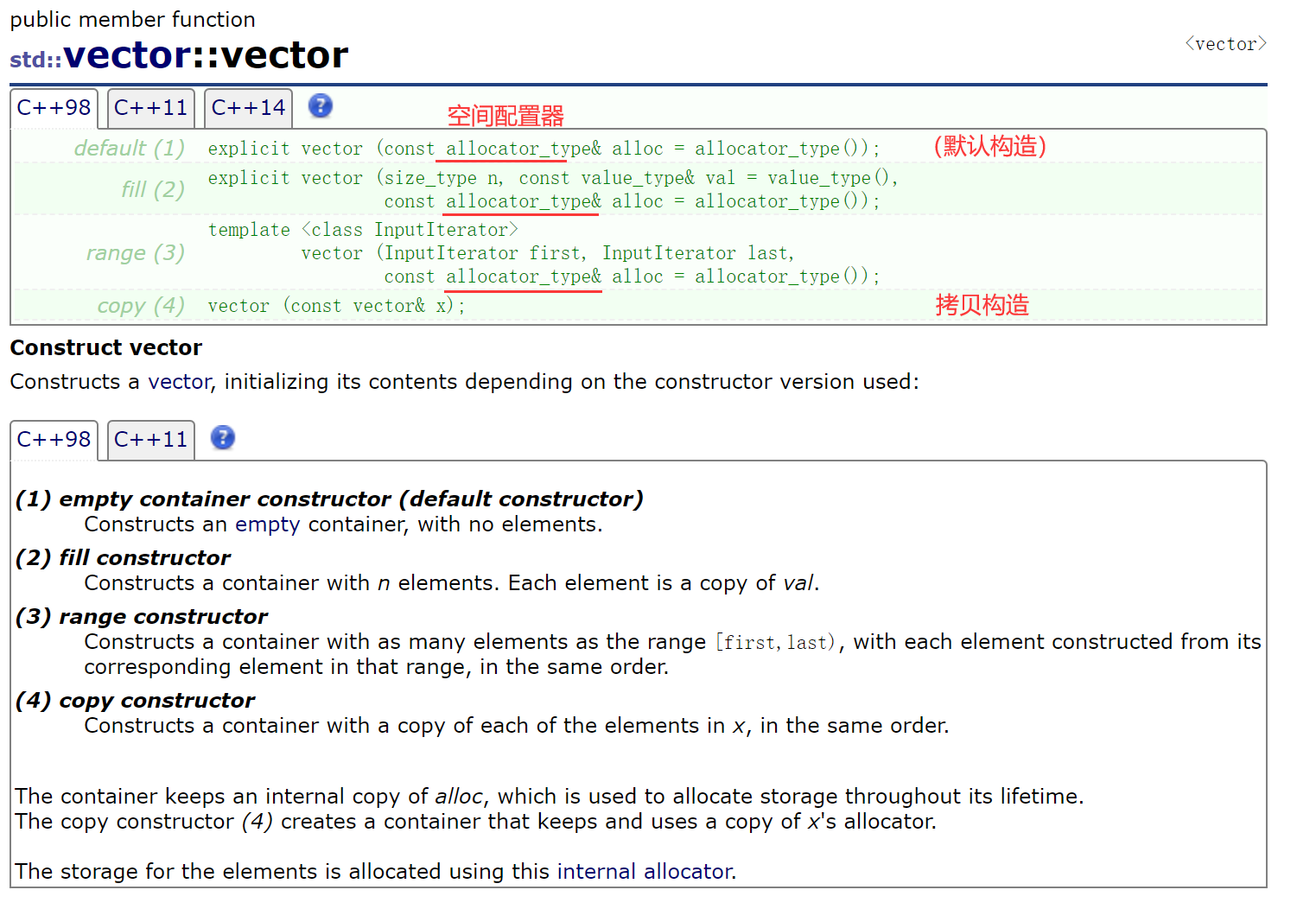 vector (const vector& x); (拷贝构造-重点) | 拷贝构造 |