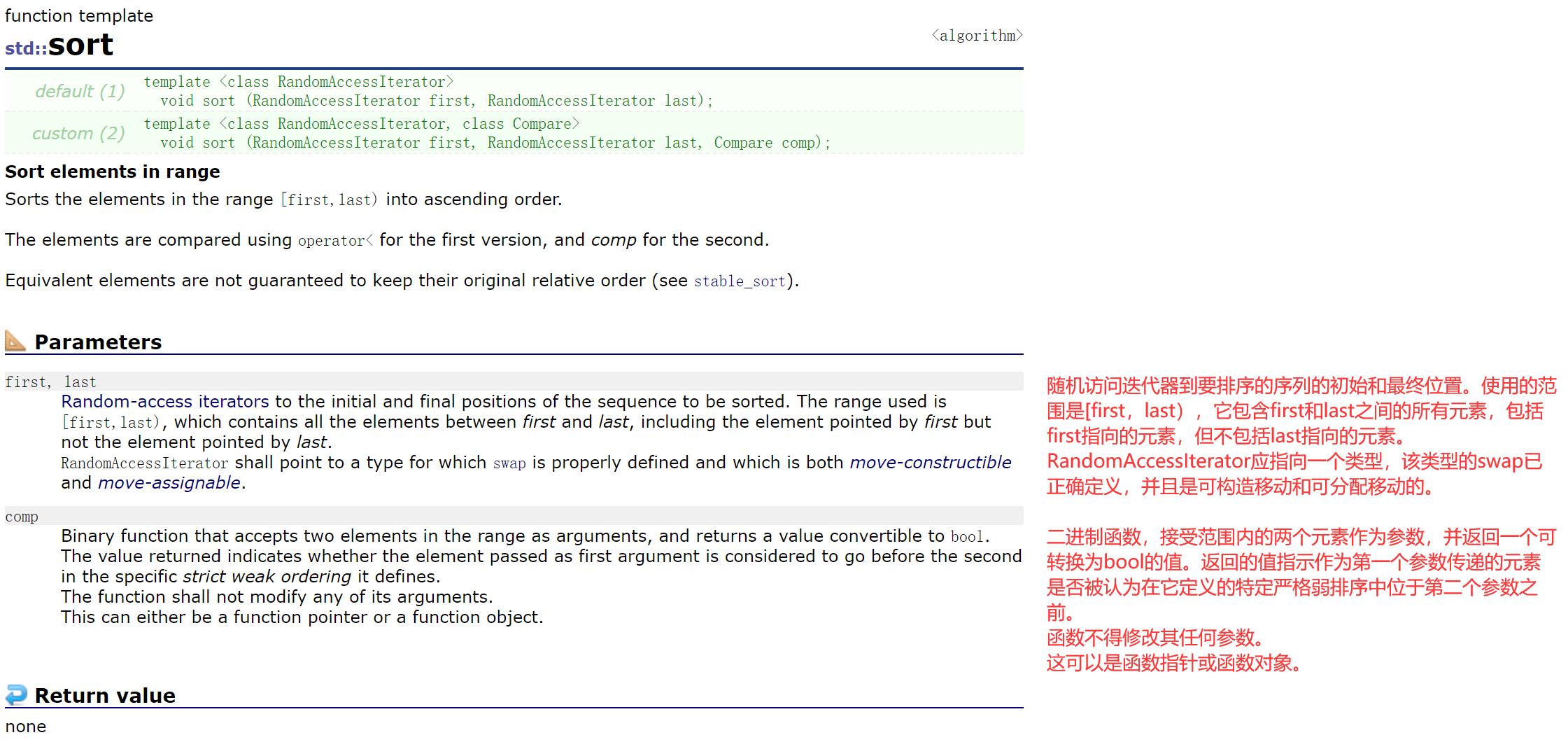 sort是一个函数模版,传递的是迭代器。使用需要包含算法头文件<algorithm>