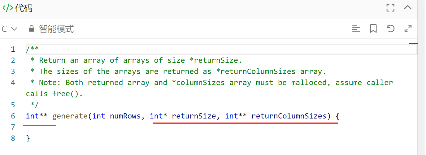 - 【返回值】:C也要求一个二维数组,但是这个二维数组要动态开辟——创建在堆上的二维数组,否则出了作用域就销毁了。