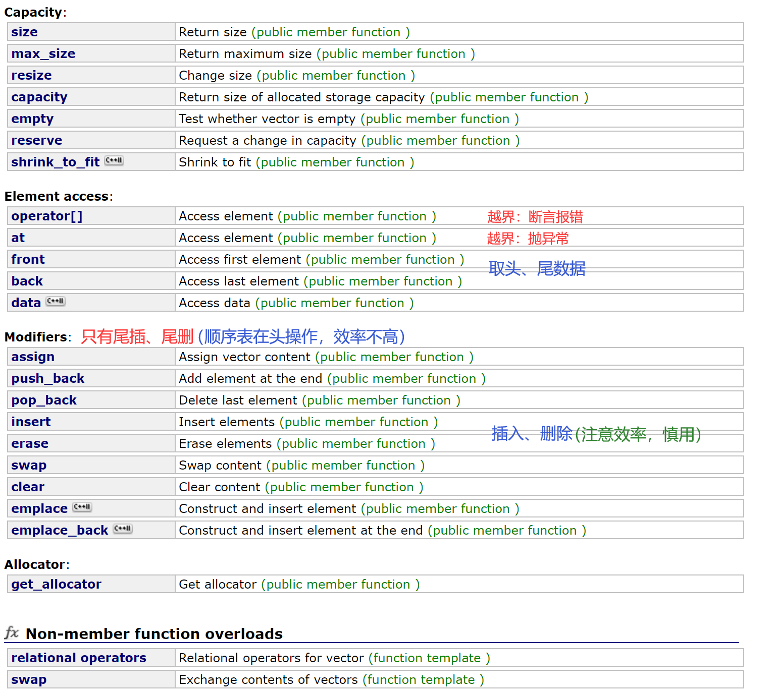 - vector在实际中非常的重要,在实际中我们熟悉常见的接口就可以,下面列出了哪些接口是要重点掌握的。