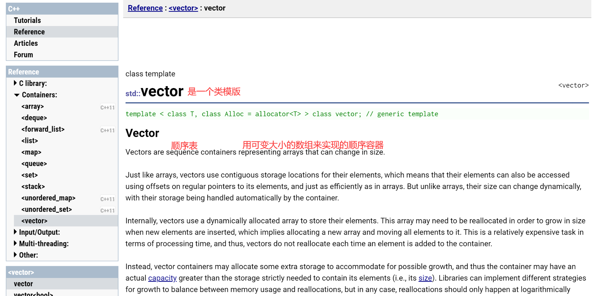 - 就像数组一样,vector也采用的连续存储空间来存储元素。也就是意味着可以采用下标对vector的元素进行访问,和数组一样高效。但是又不像数组,它的大小是可以动态改变的,而且它的大小会被容器自动处理。