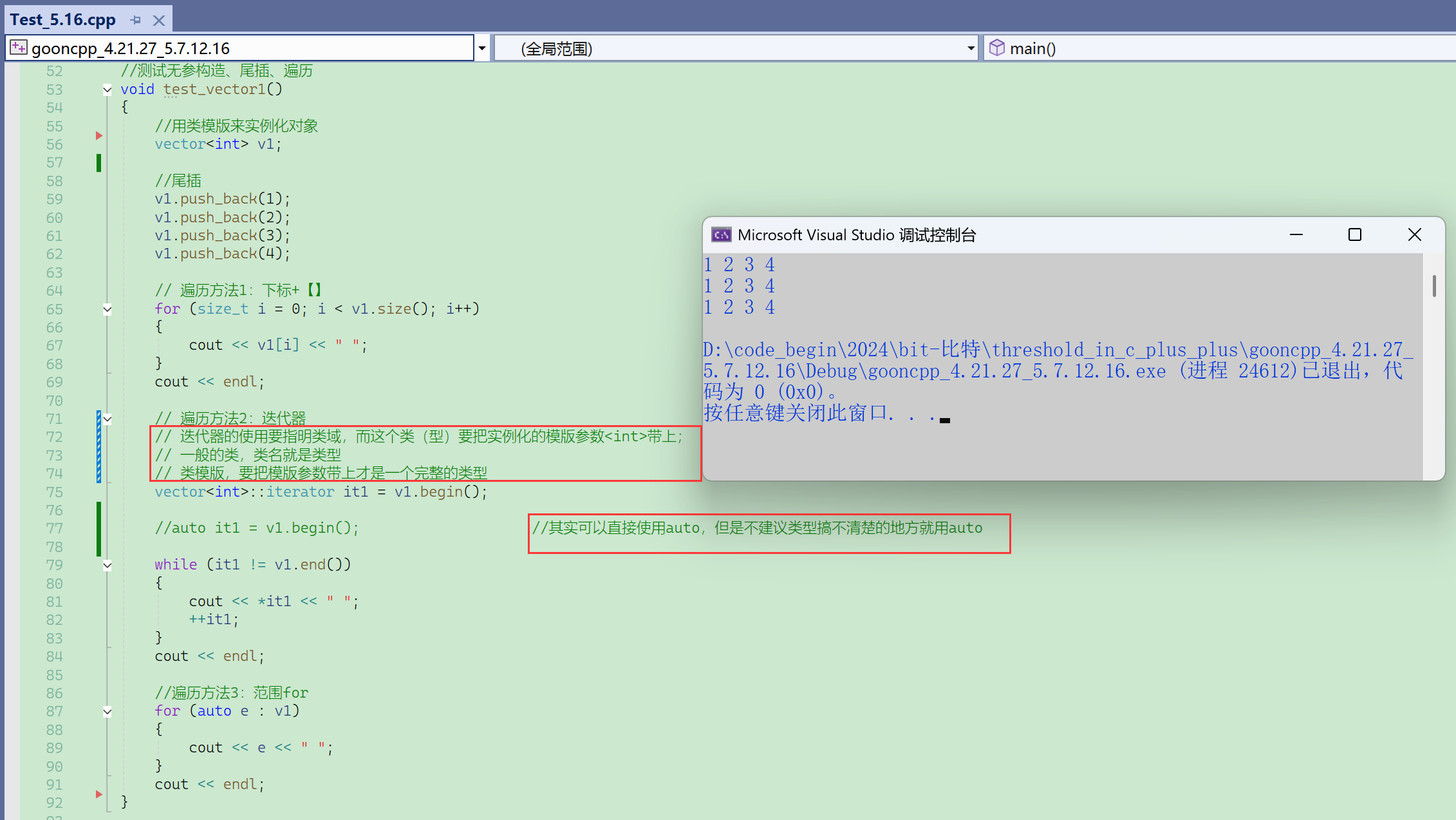 vector更喜欢用范围for(在不涉及下标的地方),虽然范围for底层是迭代器,但上层使用起来更方便