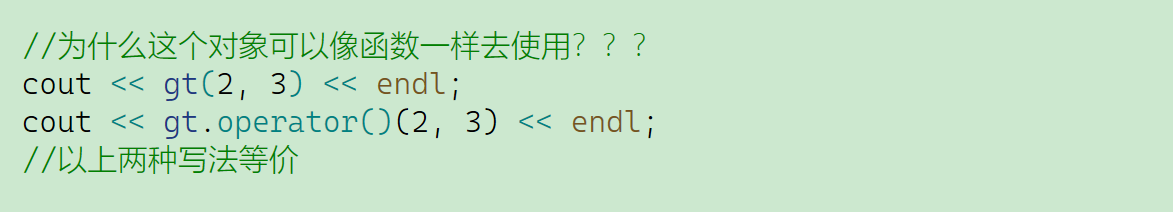 - 这个对象重载了(),这样当转换调用的时候,对象名gt直接跟运算符(),就像是在使用函数一样。