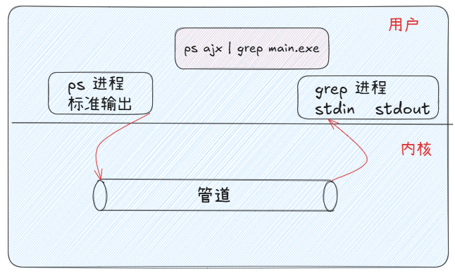 {// 1. 创建管道int fds[2] = {0}; // fds[0]:读端 fds[1]: 写端int n = pipe(fds);if (n < 0){std::cerr << "pipe error" << std::endl;return 1;}std::cout << "fds[0]: " << fds[0] << std::endl;std::cout << "fds[1]: " << fds[1] << std::endl;// 2. 创建子进程pid_t id = fork();if (id == 0){// child// code// 3. 关闭不需要的读写端,形成通信信道// f -> r, c -> wclose(fds[0]);ChildWrite(fds[1]);close(fds[1]);exit(0);}// 3. 关闭不需要的读写端,形成通信信道// f -> r, c -> wclose(fds[1]);FatherRead(fds[0]);waitpid(id, nullptr, 0);close(fds[0]);return 0;