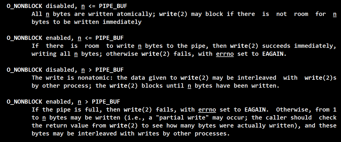 PIPE_BUF:如果写入的字节数小于PIPE_BUF,就应该是原子写入。