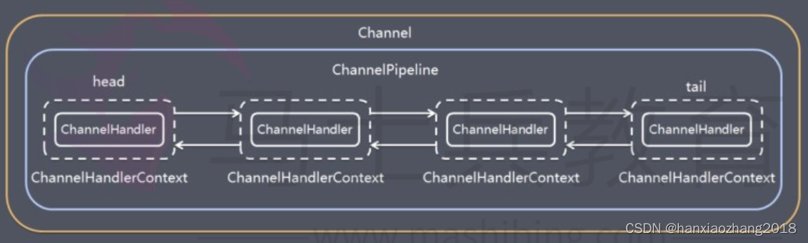 - InboundHandler顺序执行(头到尾),OutboundHandler逆序执行(尾到头)。