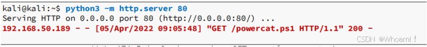 在Kali的第二个终端中,启动一个HTTP服务器来托管Powercat脚本: