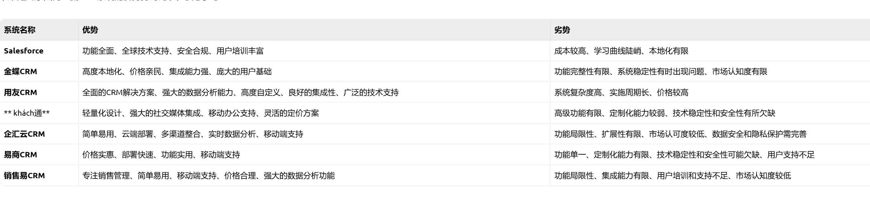 功能局限性:相比大型CRM系统,功能较为基础,难以满足复杂的业务需求。
