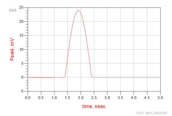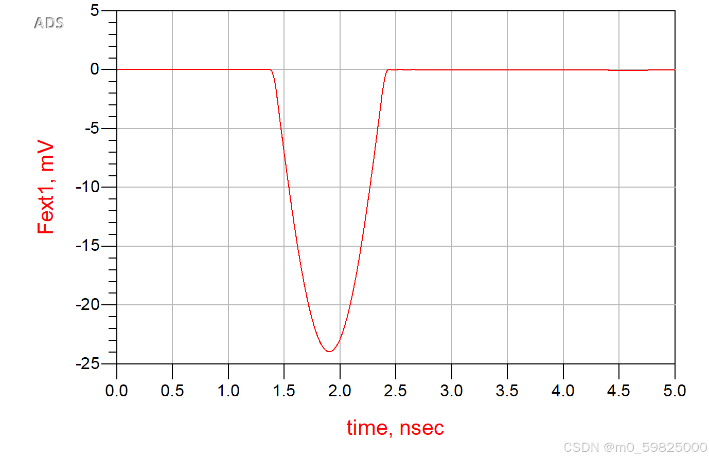 可以观察到Sig_Rec2会比Sig_Rec1更慢一些,原因为因为SC3信号传输线的信号在传输到Fext2点时有远端串扰发生在Sig_Rec2点上,远端串扰波形入下: