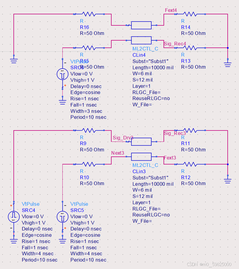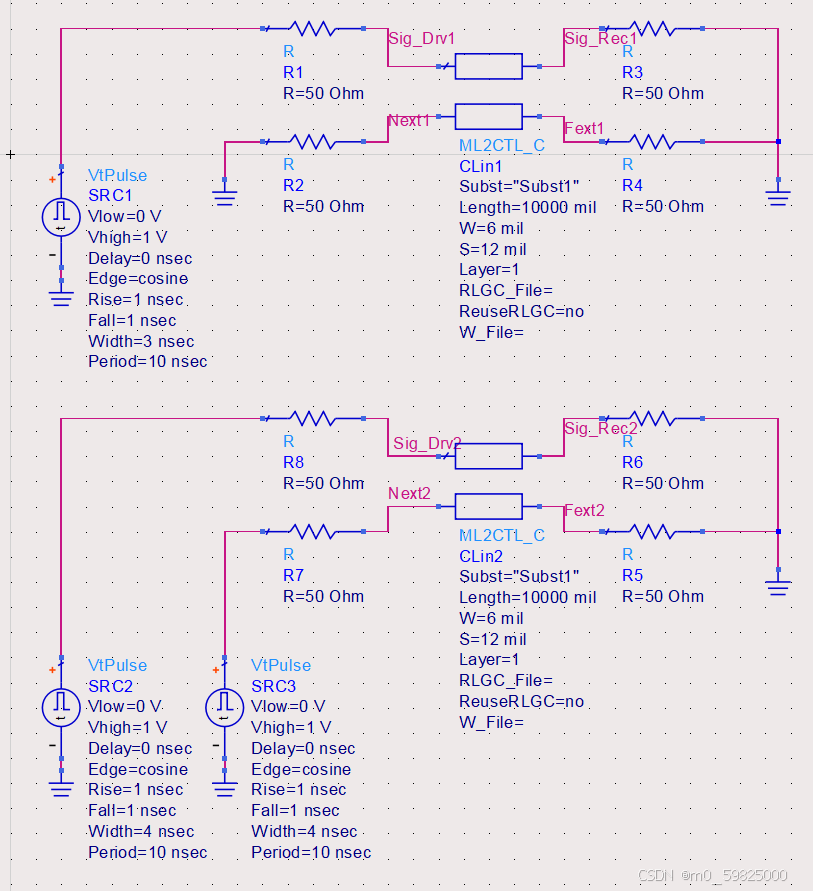 使用ADS仿真观察串扰噪声对信号边沿的影响:
