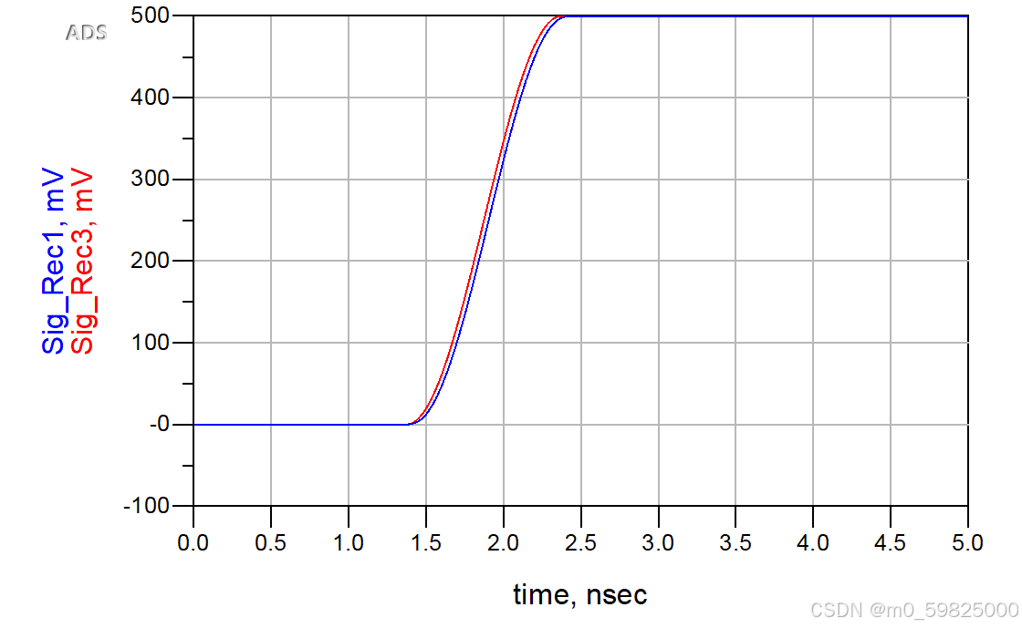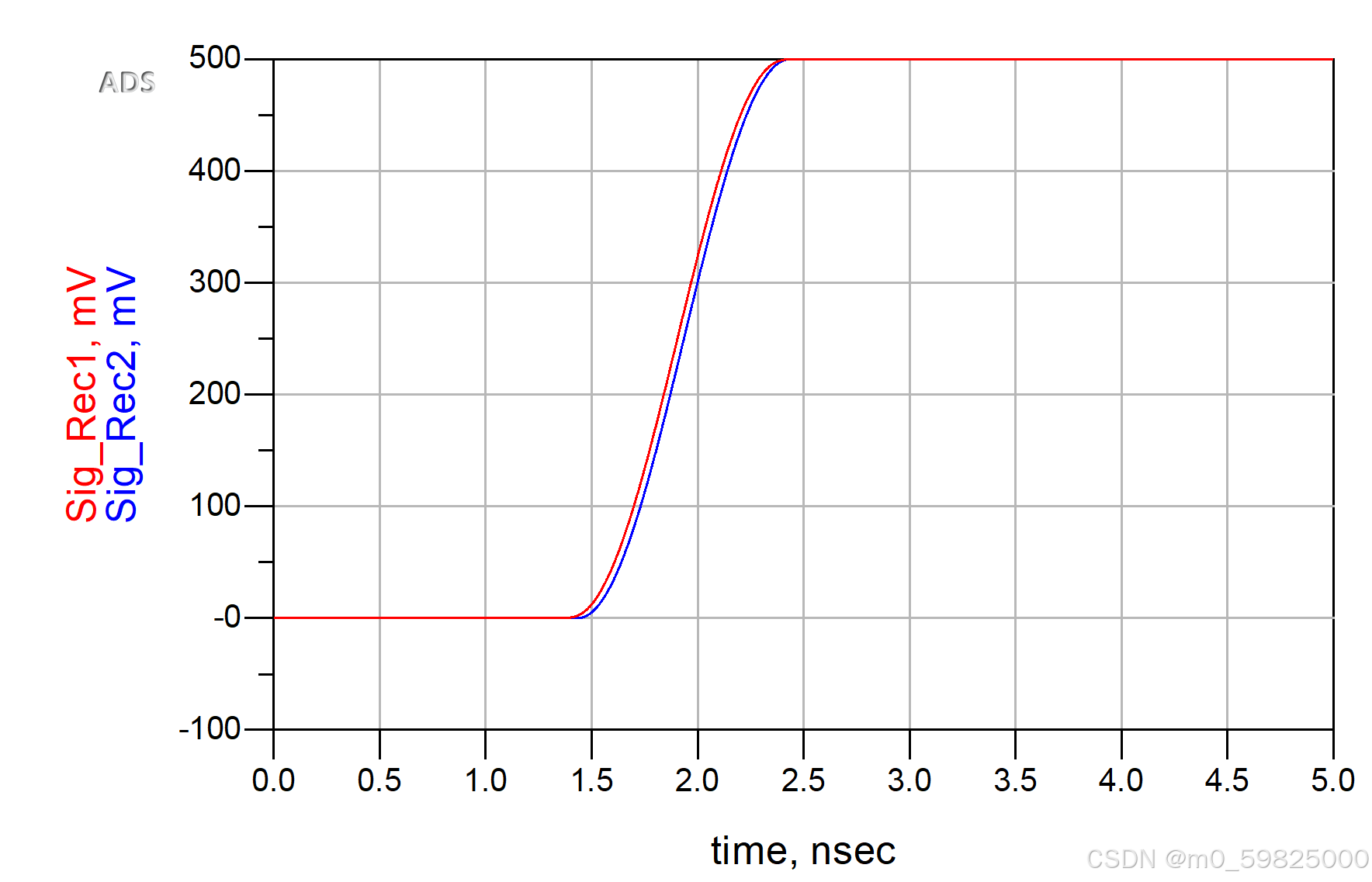Sig_Rec1是正常无串扰影响的波形,Sig_Rec2是两个信号源同时发出在两根信号线上传输,观察波形: