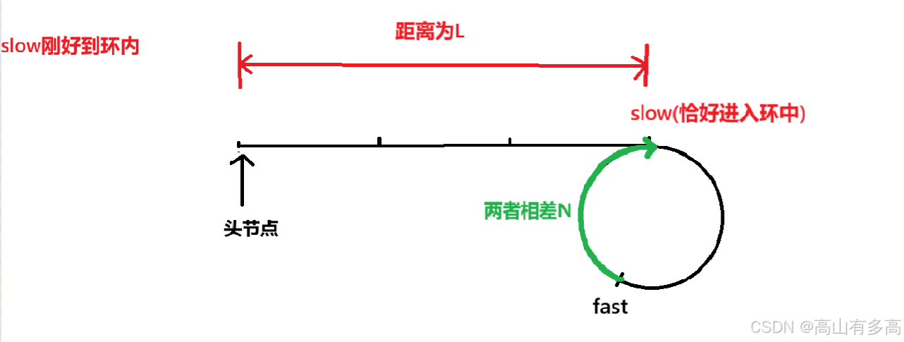 slow 走的路程是 L + N(从表头到环入口的 L,加环内走的 N)。