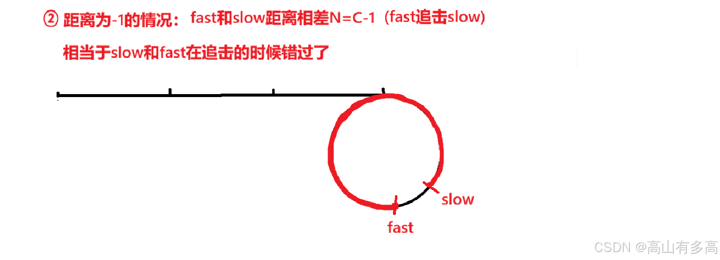 - 若环长 C 是偶数(此时 N = C - 1 仍为奇数),永远追不上,会进入 “追不上的死循环”。