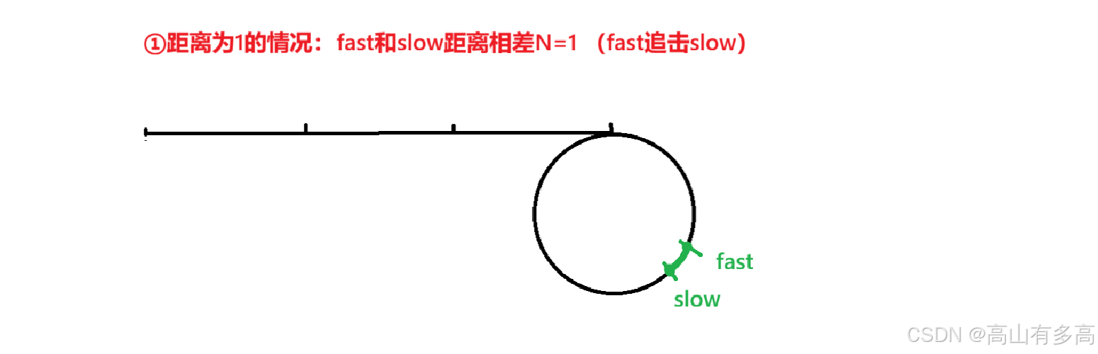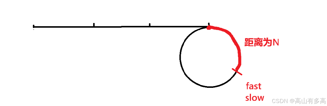 所以距离从 N 开始,依次变为N-1→N-2→N-3→……→3→2→1→0 不断缩小,最终一定会缩小到 0,此时 slow 和 fast 就相遇了。
