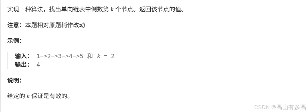 {ListNode *fast=head,*slow=head;while(k--){fast=fast->next;}while(fast){fast=fast->next;slow=slow->next;}return slow->val;