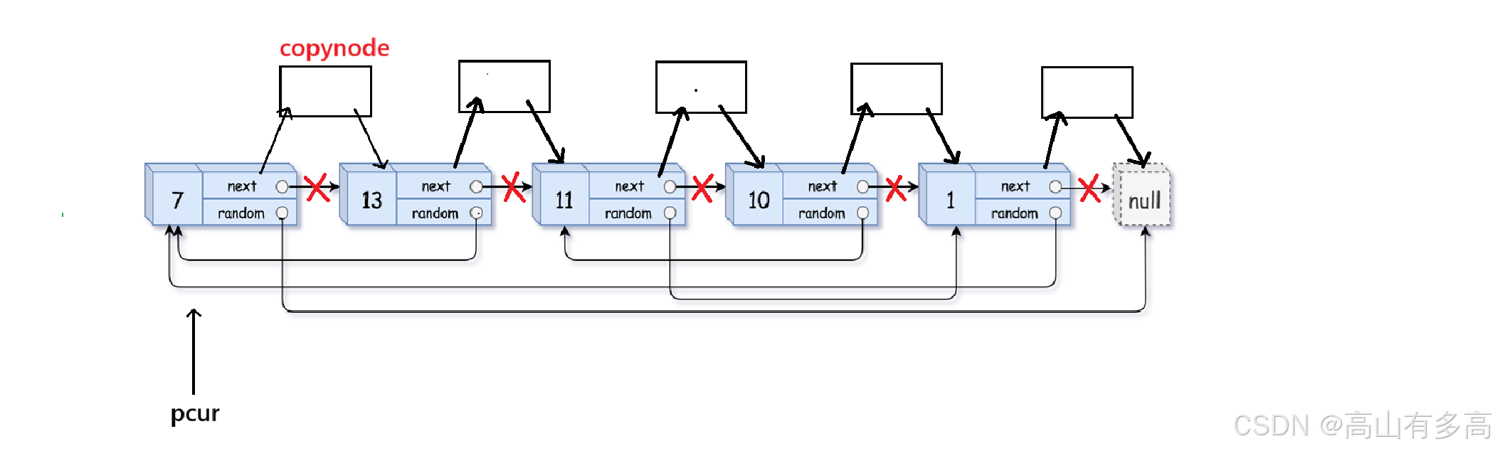 ③通过将每个拷贝节点进行剪下来,在串联起来就是我们需要寻找的拷贝链表