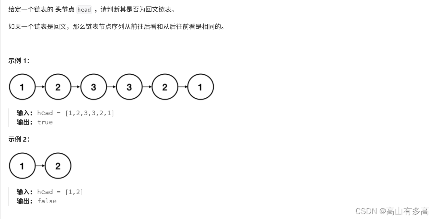 {ListNode* pmid=findMid(head);ListNode* newhead=reverseList(pmid); ListNode* pcur=head;while(pcur!=pmid){if(pcur->val!=newhead->val){return false;}pcur=pcur->next;newhead=newhead->next;}return true;