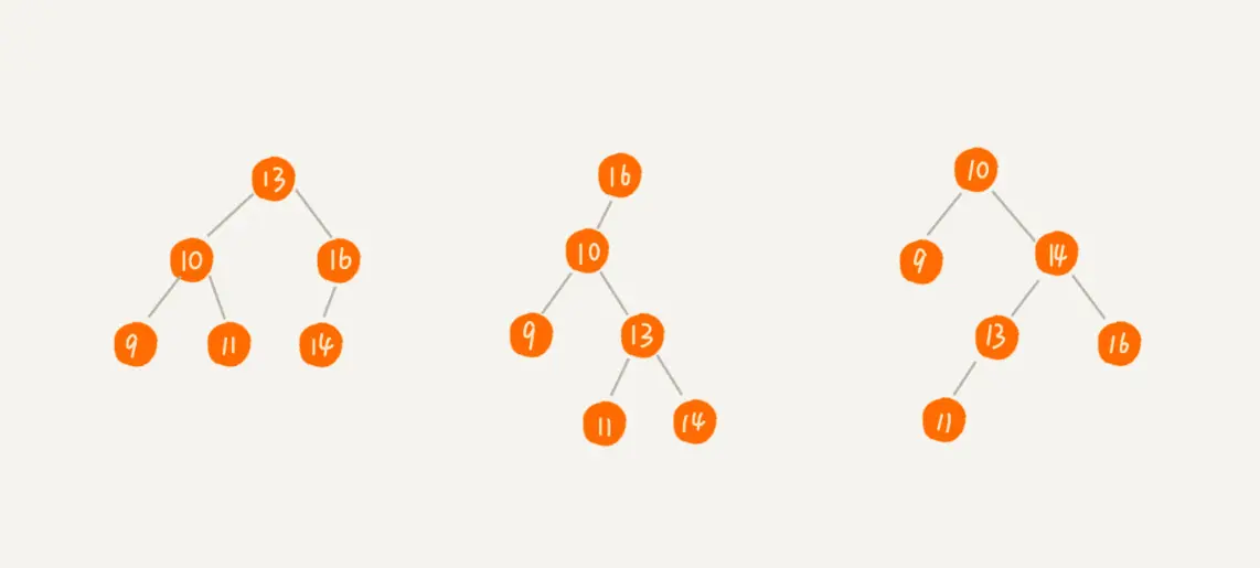 这些都依赖于二叉查找树的特殊结构。二叉查找树要求,在树中的任意一个节点,其左子树中的每个节点的值,都要小于这个节点的值,而右子树节点的值都大于这个节点的值。