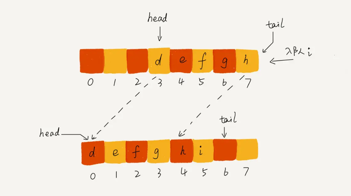 基于数组的顺序循环队列在enqueue()和dequeue()上使用CAS原子操作,并发性能非常高效,这也是为什么比链式队列应用更广的原因.