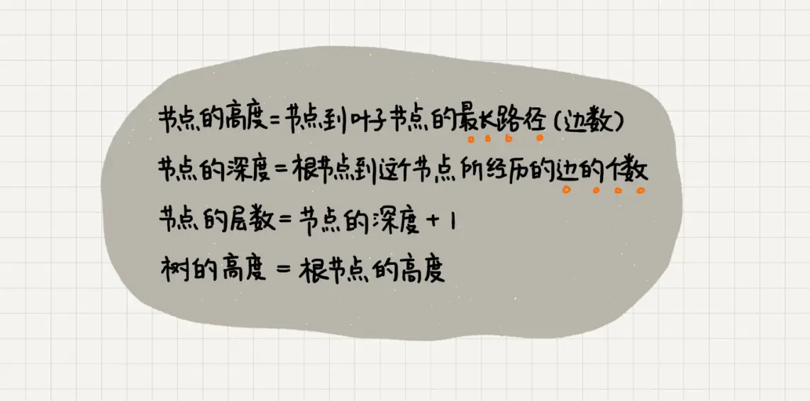 A 节点就是 B 节点的父节点,B 节点是 A 节点的子节点。B、C、D 这三个节点的父节点是同一个节点,所以它们之间互称为兄弟节点。我们把没有父节点的节点叫做根节点,也就是图中的节点 E。我们把没有子节点的节点叫做叶子节点或者叶节点,比如图中的 G、H、I、J、K、L 都是叶子节点。