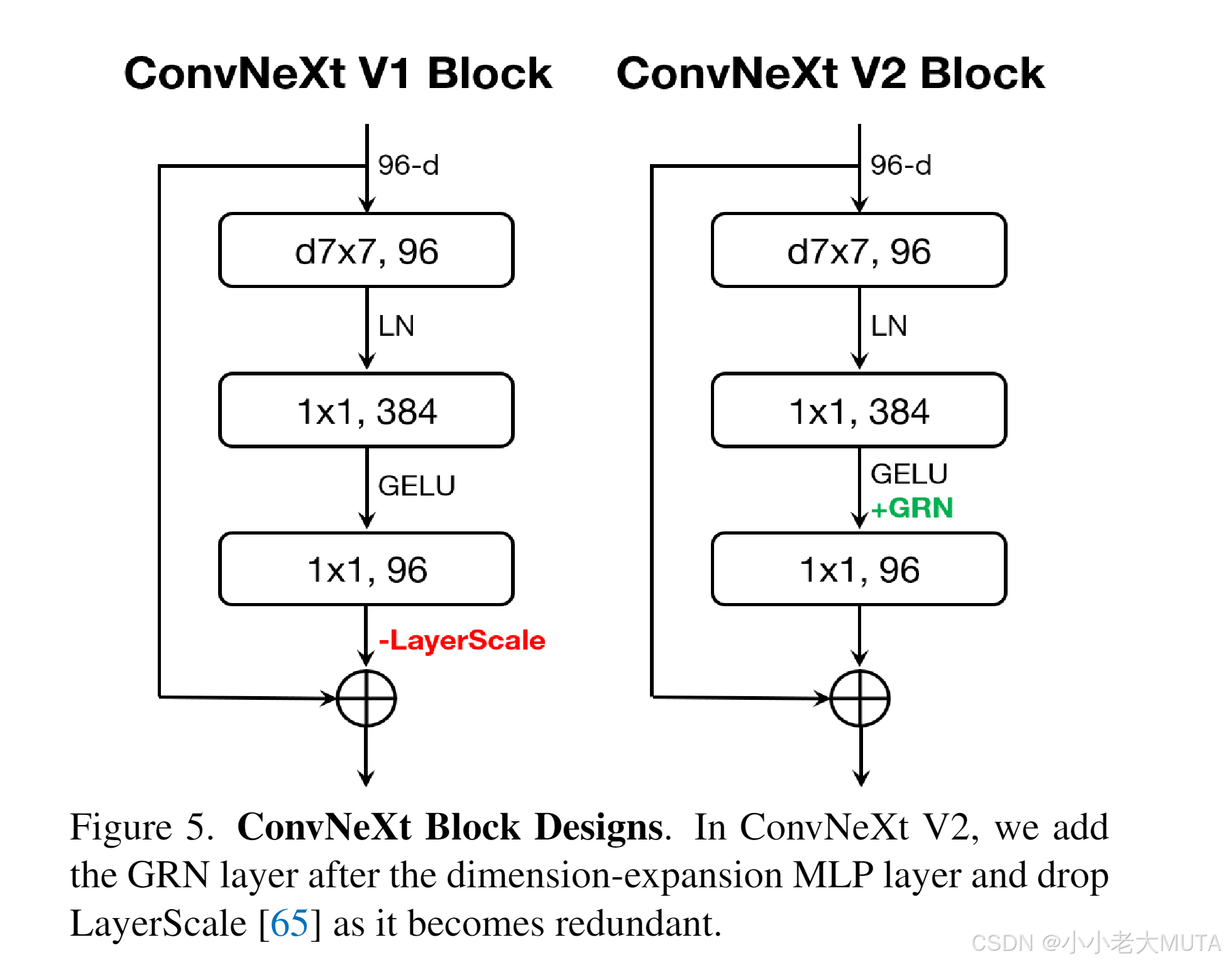将GRN层融入原始ConvNeXt块,如图5所示。
