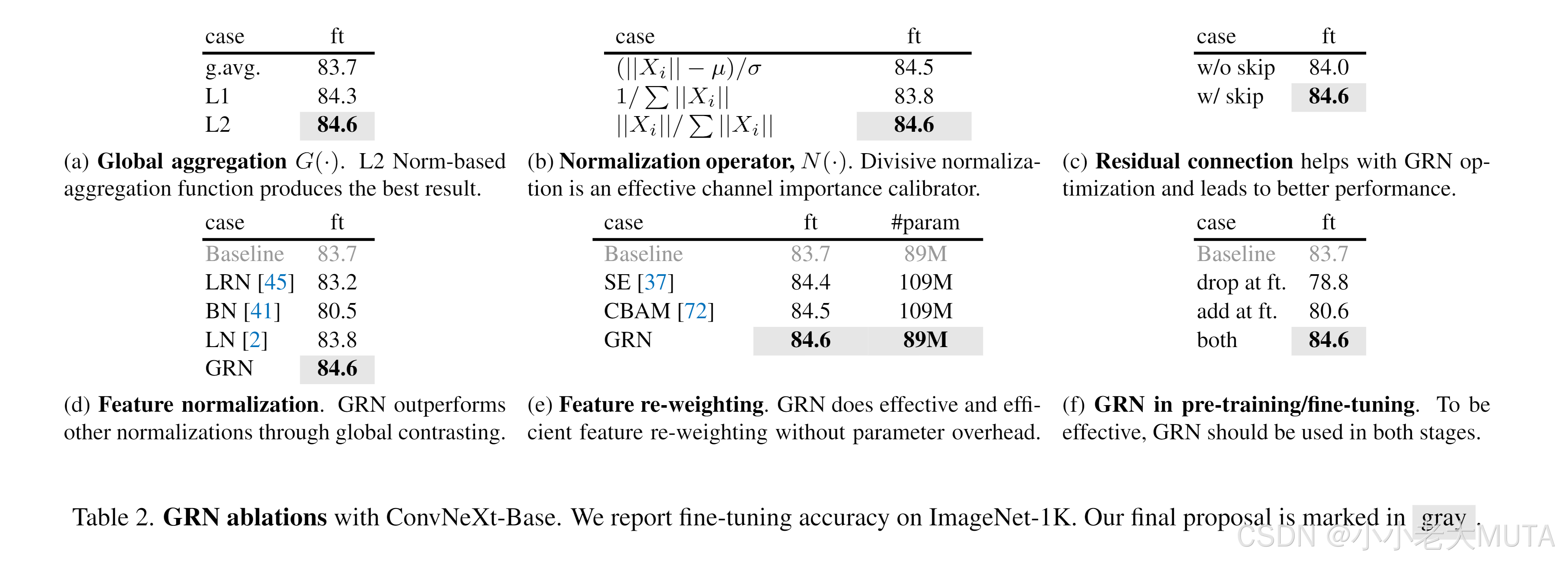 实验证明,加入GRN后LayerScale[65]变得多余,可被移除。
