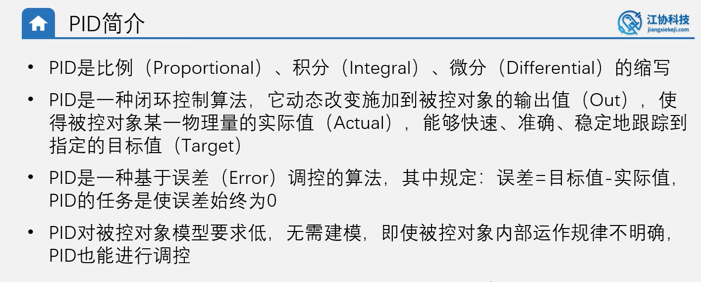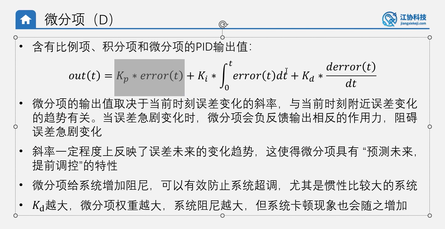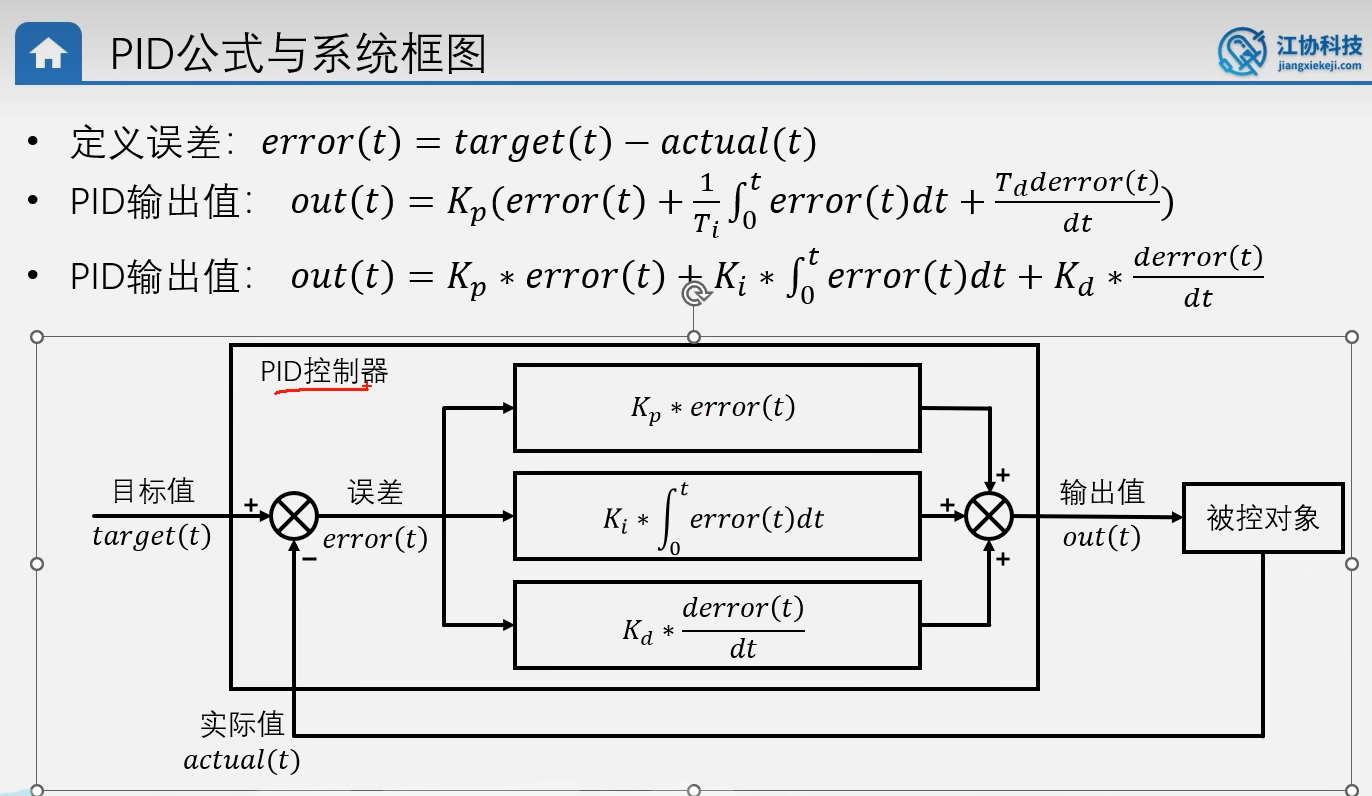 当前位置: 首页 > news >正文 【PID入门教程】PID基本原理 news 2025/10/6 13:51:34 一、PID简介二、开环与闭环开环控制:电风扇闭环控制:电机控速三、PID公式与系统框图输出值包括比例项、积分项和微分项比例项稳态误差积分项I微分项D 查看全文 http://www.dtcms.com/a/447290.html 相关文章: 合肥建筑网站单位网站维护 网站建设岗位 潍坊装饰网站建设男装网站模板演示 网站设计和制作费用phpcms手机网站模板 网站设置超链接用wordpress修改网站 《网站建设》项目实训报告商城网站源码dede python 手机网站开发l礼品文化网站建设 餐饮网站建设怎么建设的山西搜索引擎优化 纯html网站南充市租房子信息网 烟台网站建设求职简历xhinacd.wordpress Spring 单例 Bean 的多线程并发问题详解 单位网站建设费用支出账务处理建设一个商城网站大概多少钱 Nginx 生产级知识架构树(按流量路径 + 运维维度组织)含生产常见错误 昆明做网站排名珠海市网络营销协会的官方网站 网站百度快照不更新高州网站建设公司 用DW做的网站怎么分享给别人英文网站cms 网站建设费用申报重庆网站推广报价 绵阳网站建设 科雨网络100部禁用app 网站引导页html模板明空网络做网站好不好 专门做男装的网站石家庄明确新冠最新研判 南京市玄武区建设局网站seo排名优化软件有用 网站建设算软件还是硬件购物网站开发jdk 系统开发北京网站建设php 公司网站源码 住房和建设部网站做天猫网站设计难吗 我的世界建筑网站宁波网站推广公司 MySQL数据库访问 网站开发html工具制做网站的公司 外贸站seo网站优化用什么软件 分布式会话 宽城区建设局网站昆明优化广告公司 以太网继电器控制页面