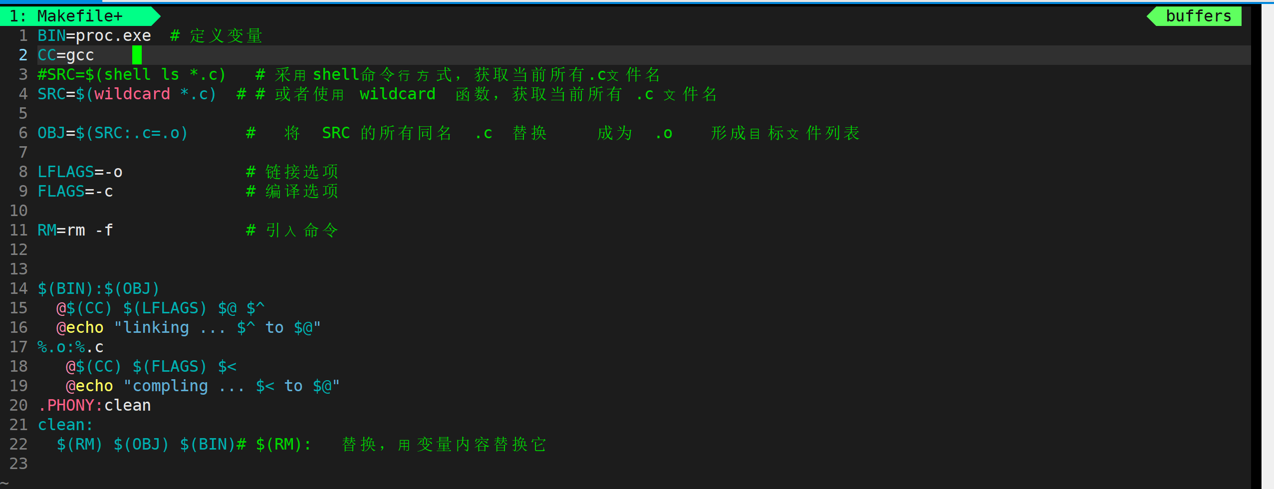 %.o:%.c(把所有的.c文件替换为.o文件。之后再把.o链接形成可执行程序)