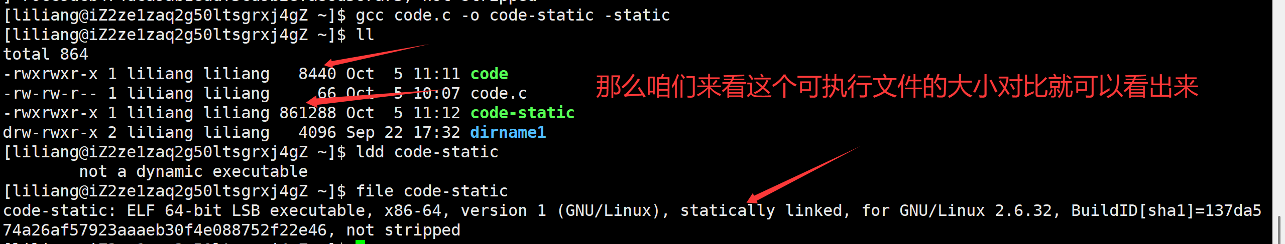 可执行文件大小 | 较大(包含库代码)(注意这个地方是可执行文件的大小) | 较小(仅含依赖记录) |