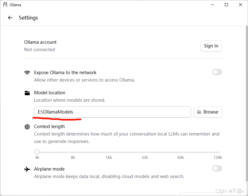 下载完成之后,进入Ollama点击左上角,再点击设置,可以改变下载模型的位置