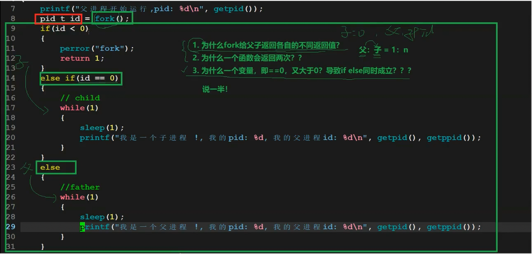 • 为什么fork给父子返回各自的不同返回值?