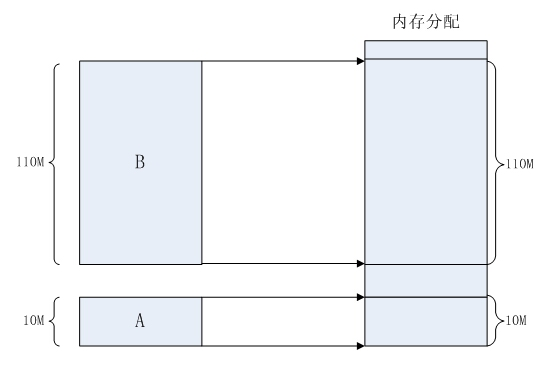 那当程序同时运行多个程序时,操作系统是如何为这些程序分配内存的呢?例如某台计算机总的内存大小是128M,现在同时运行两个程序A和B,A需占用内存10M,B需占用内存110。计算机在给程序分配内存时会采取这样的方法:先将内存中的前10M分配给程序A,接着再从内存中剩余的118M中划分出110M分配给程序B。