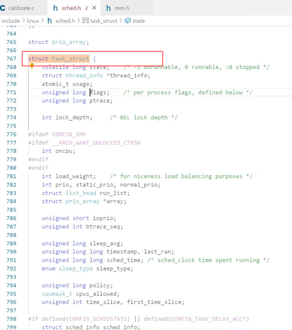 定位mm_struct文件所在位置和task_struct所在路径是一样的,不过他们所在文件是不一样的,