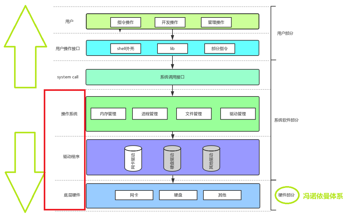 只要我们的程序可以判断访问了硬件,那么这个程序就必须贯穿了上图软硬件体系结构