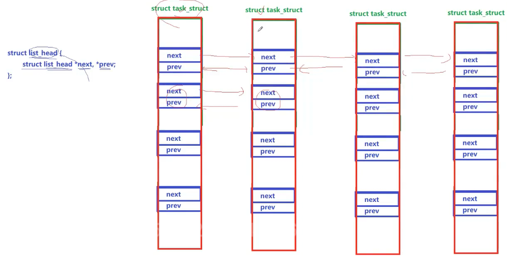 更深入一点,其实对于每一块区域来说都是这样,实际每一个区域都是通过vm_mm链表进行管理,最后同一通过mm_struct进行管理,只需要记录每一个vm_mm对应的地址就行。