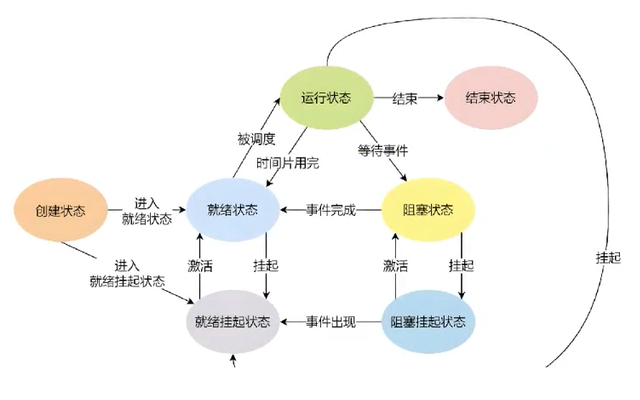 3-2-1运行&&阻塞&&挂起状态
