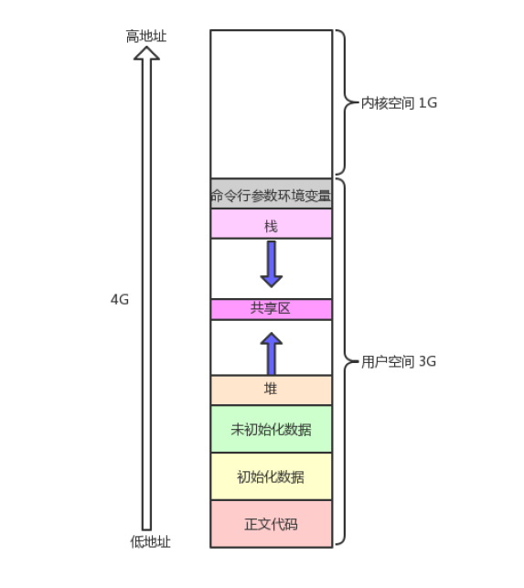 虚拟地址空间的出现实现了一个进程对应一个虚拟地址空间,对于每个进程来说,看不到实际的物理内存的其他进程使用情况,那么就让每一个进程认为自己有4GB的物理内存,即独占整个物理内存。