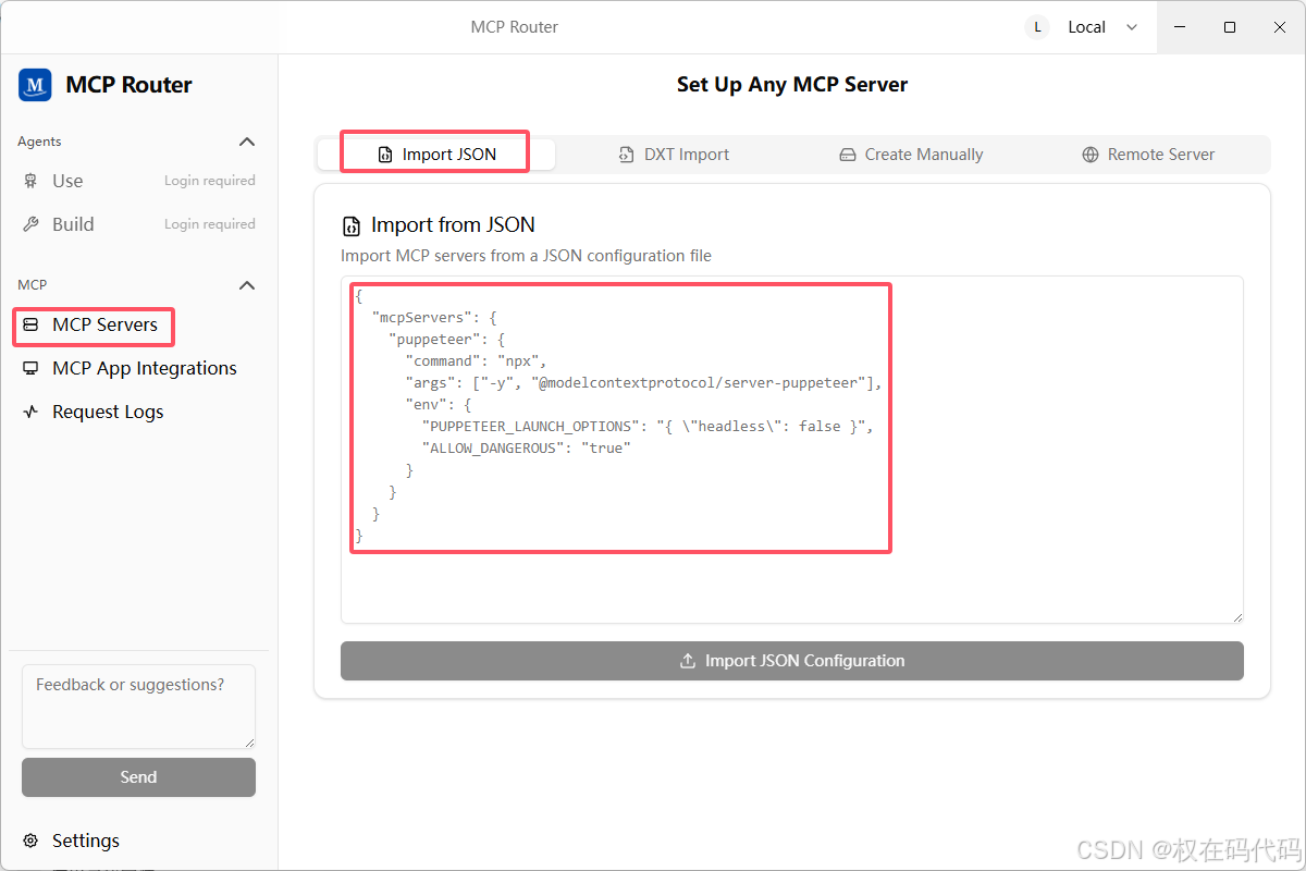 1、MCP配置,直接使用mcp-router,一键缝合所有想要的MCP服务。Releases内下载对应版本。
