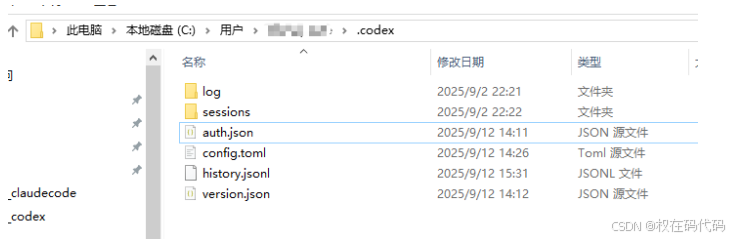 在C:\Users\xxx(你的用户名)文件夹下会自动生成.codex文件夹。如果没有.codex文件夹,那么需要手动创建文件夹,然后创建config.toml以及auth.json两个文件
